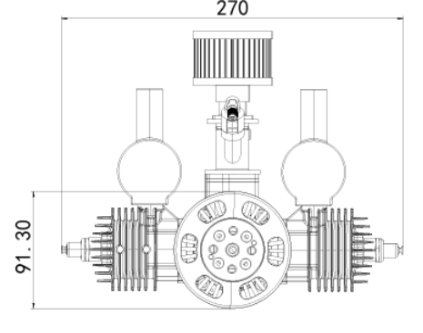 无人机二冲程发动机,启发一体电喷风冷式,双杠自动进角CDI点火,混合气润滑,推式和拉式装置,航模复合翼固定翼,汽油版